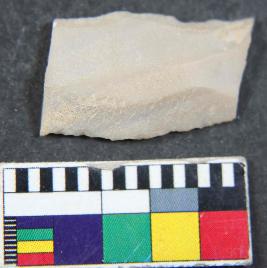| Description / विवरण | Piece of parallel sided chert blade with having two dorsal ridges. |