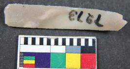 | Description / विवरण | Parallel sided slightly curve chert blade with having three dorsal ridges. |