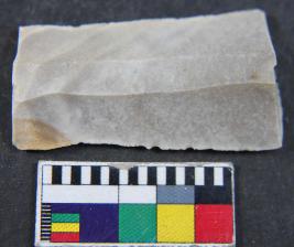 | Description / विवरण | A parallel sided blade of rectangular shape having two dorsal ridge with trapezoidal in section. It has retouching and smooth surface. |