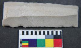 | Description / विवरण | A sharp parallel sided blade having rectangular shape with three dorsal ridge and triangular in section. It has retouching and smooth surface. |