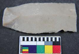 | Description / विवरण | A sharp parallel sided blade having rectangular shape with one dorsal ridge and triangular in section with positive bulb percussion on ventral side. It has retouching and smooth surface. |