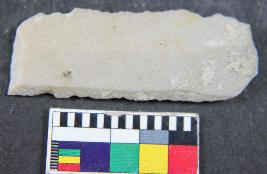 | Description / विवरण | Blade with irregular sides having two dorsal ridges. It has bulb of percussion on the ventral side. |