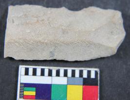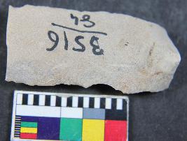 | Description / विवरण | Blade with one curved end and parallel sides having two dorsal ridges. It has bulb of percussion on the ventral side. |