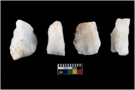 | Description / विवरण | A specimen of a fluted core having several broad fluted marks indicating the detached blades from it |