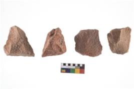 | Description / विवरण | Specimen of flake tools with prominent flaking marks. It made up of a short flakes with sides trimmed. |