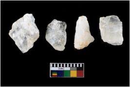 | Description / विवरण | A specimen of a fluted core having several broad fluted marks indicating the detached blades from it |