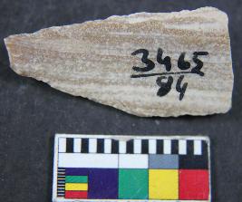 | Description / विवरण | Parallel sided Blade with one conical end and three dorsal ridges. Retouchings are also present. |
