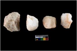 | Description / विवरण | A specimen of a fluted core having several broad fluted marks indicating the detached blades from it |