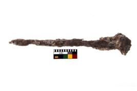 | Description / विवरण | Iron nail with circularsection ,rusted surface ,tapering end |