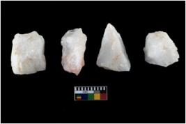| Description / विवरण | A specimen of a fluted core having several broad fluted marks indicating the detached blades from it |
