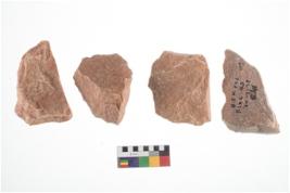 | Description / विवरण | Specimen of flake tools with prominent flaking marks. It made up of a short flakes with sides trimmed. |