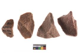 | Description / विवरण | A specimen of flake tool with prominent flaking marks. It made up of a short flakes with sides trimmed. It is rectangular in shaped |