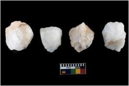 | Description / विवरण | A specimen of a fluted core having several broad fluted marks indicating the detached blades from it |