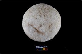 | Description / विवरण | A complete specimen of a hammer stone made of quartz , it is circular in shape , it has rough surface. |