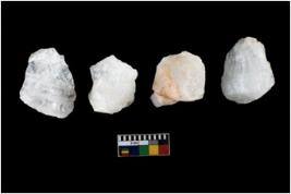 | Description / विवरण | A specimen of a fluted core having several broad fluted marks indicating the detached blades from it |
