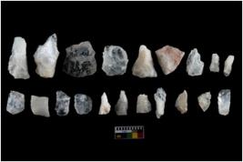 | Description / विवरण | There are n-20 of intact flake cores made up of Quartz. Some of them have bulge of percussion and some are flat flakes. |