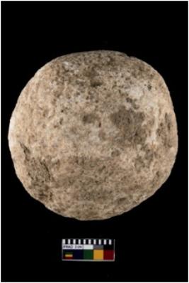 | Description / विवरण | A partially broken specimen ofa hammerstone made of quartz, it is circular in shape , it has rough surface |