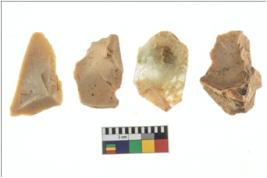 | Description / विवरण | Four worked utilised flakes. Most of them are uneven with sharp edges. |