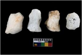 | Description / विवरण | A specimen of a fluted core having few fluted marks before removing of blades form it. It is roughly rounded in shape and white in colour. |