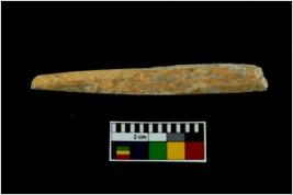 | Description / विवरण | A specimen of bone point with conical body and circular cross section. It is creamish in colour. |