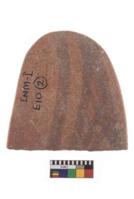 | Description / विवरण | Potters Tool of Black-on- Red Ware with horizontal black bands. |