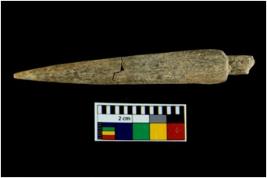 | Description / विवरण | A specimen of bone point with conical body and circular cross section. It is creamish in colour. |