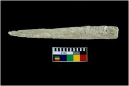 | Description / विवरण | A specimen of bone point with conical body and circular cross section. It is creamish in colour. |