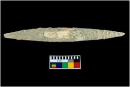 | Description / विवरण | A specimen of bone point with conical body and circular cross section. It is creamish in colour. |