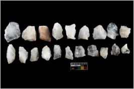 | Description / विवरण | There are n-20 of intact flake cores made up of Quartz. Some of them have bulge of percussion and some are flat flakes. |