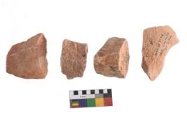 | Description / विवरण | Specimen of flake tools with prominent flaking marks. It made up of a short flakes with sides trimmed. |
