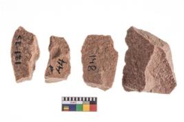 | Description / विवरण | A specimen of flake tool with prominent flaking marks. It made up of a short flakes with sides trimmed. It is rectangular in shaped |