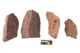| Description / विवरण | Specimen of flake tool with prominent flaking marks. They are made up of a short flakes with sides trimmed. |