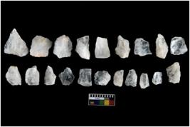 | Description / विवरण | There are n-20 of intact flake cores made up of Quartz. Some of them have bulge of percussion and some are flat flakes. |