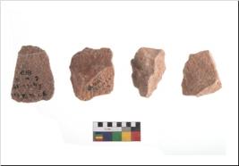 | Description / विवरण | Specimen of flake tools with prominent flaking marks. It made up of a short flakes with sides trimmed. |