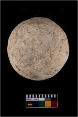 | Description / विवरण | A complete specimen of a slingball made of quartz, It is circular in shape and has rough surface |