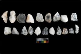 | Description / विवरण | There are n-20 of intact flake cores made up of Quartz. Some of them have bulge of percussion and some are flat flakes. |
