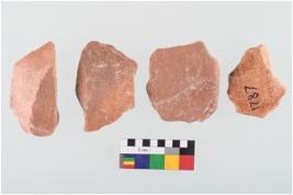 | Description / विवरण | A specimen of a fluted core having several broad fluted marks indicating the detached blades from it |