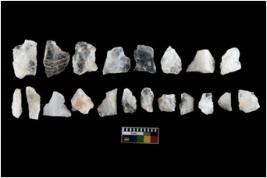 | Description / विवरण | There are n-20 of intact flake cores made up of Quartz. Some of them have bulge of percussion and some are flat flakes. |