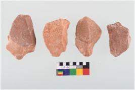 | Description / विवरण | A specimen of a fluted core having several broad fluted marks indicating the detached blades from it |