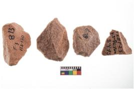 | Description / विवरण | A specimen of flake tool with prominent flaking marks. It made up of a short flakes with sides trimmed. It is rectangular in shaped |