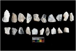 | Description / विवरण | There are n-20 of intact flake cores made up of Quartz. Some of them have bulge of percussion and some are flat flakes. |