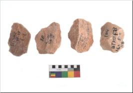 | Description / विवरण | Specimen of flake tools with prominent flaking marks. It made up of a short flakes with sides trimmed. |