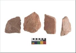 | Description / विवरण | Specimen of flake tools with prominent flaking marks. It made up of a short flakes with sides trimmed. |