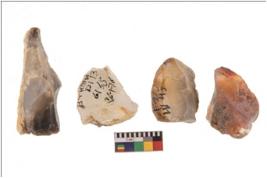 | Description / विवरण | Four cores; most of them are uneven with flakes removed from almost all the sides. |