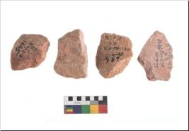 | Description / विवरण | Specimen of flake tools with prominent flaking marks. It made up of a short flakes with sides trimmed. |