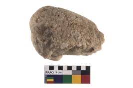| Description / विवरण | A partially broken specimen of a muller made of quartz, both surfaces are rough and one is slightly curved. |