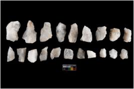 | Description / विवरण | There are n-20 of intact flake cores made up of Quartz. Some of them have bulge of percussion and some are flat flakes. |