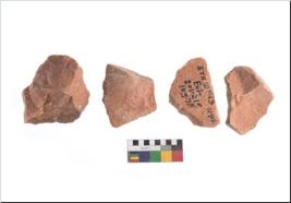 | Description / विवरण | Specimen of flake tools with prominent flaking marks. It made up of a short flakes with sides trimmed. |