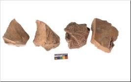 | Description / विवरण | Four utilised worked cores with sharp edges. Flakes removed from almost all the sides. Some are tapering at one end. |