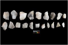 | Description / विवरण | There are n-20 of intact flake cores made up of Quartz. Some of them have bulge of percussion and some are flat flakes. |
